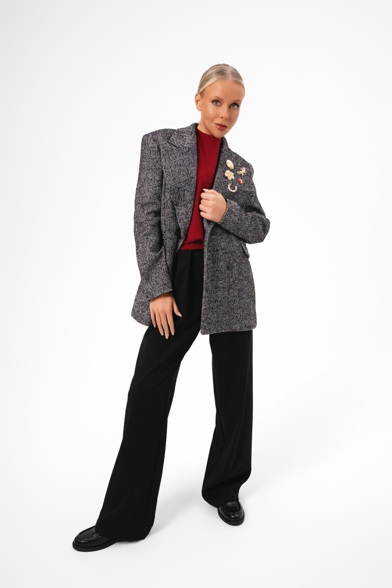 Панталон с висока талия и свободна кройка, която съчетава комфорт и изисканост. Минималистичен дизайн с лека структура и градски дух – ключов елемент за капсулен гардероб.